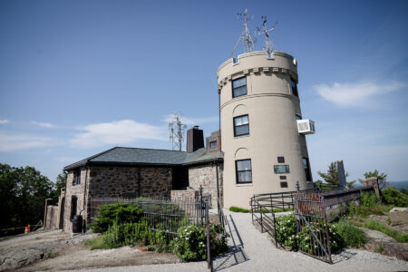 A large stone monument near the Observatory was originally erected in 1912 in honor of the Observatory’s founder, Abbott Lawrence Rotch. It was later etched with a summary of the climate means and extremes that were recorded during the Observatory’s first century (1885-1984). An inscription on the back of the monument reads: “In memory of Abbot Lawrence Rotch, founder and director of the Blue Hill Observatory, pioneer in the study of the upper air, a life devoted to science for the good of mankind”.