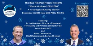 Featuring Kevin Lemanowicz, Chief Meteorologist Boston 25 and Judah Cohen, Forecasting and Principal Scientist at the Janus Group. Come with questions and leave with predictions!