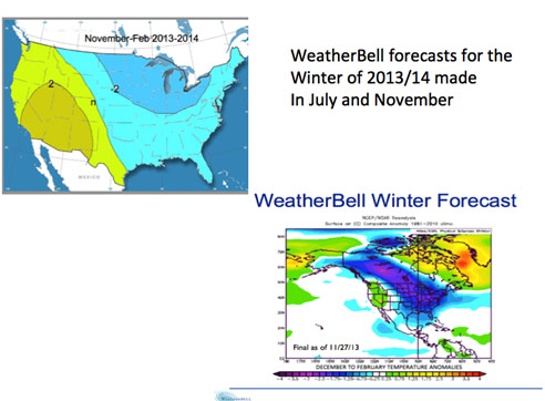 The Winter of 2013-14 was wild over North America. The media and the public were caught by surprise. At WeatherBell, we were warning clients of the possibility of an historic winter in July and went full bore cold by Thanksgiving.